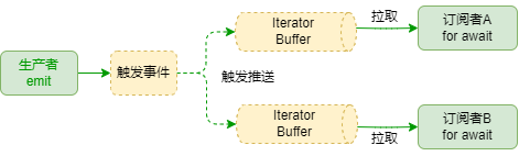 在返回异步迭代器时(即拉模式下),会为每一个订阅者创建FastEventIterator,内部自动创建一个FIFO消息缓冲区。